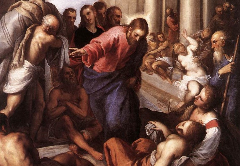 Jézus és apostolai egyszer áthajóztak a Genezáreti-tó túlsó partjára, és ott kikötöttek. Amint kiszálltak a bárkából, az emberek rögtön fölismerték Jézust. Bejárták az egész környéket, s a betegeket hordágyon odavitték, ahol a hír szerint Jézus tartózkodott. Amerre csak járt, a falvakban, a városokban és a tanyákon, kitették a betegeket a terekre, és kérték, hogy legalább a ruhája szegélyét érinthessék. Aki csak megérintette, meggyógyult.
