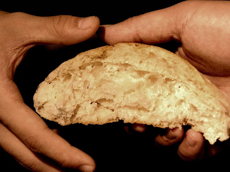 Egy alkalommal ismét nagy tömeg vette körül Jézust. Mivel nem volt mit enniük, odahívta tanítványait, és így szólt hozzájuk: „Sajnálom a népet. Már harmadnapja kitartanak mellettem, és nincs mit enniük. Ha pedig étlen bocsátom haza őket, kimerülnek az úton, hiszen többen közülük messziről jöttek.” Tanítványai így feleltek: „Honnan vehetnénk itt a pusztában annyi kenyeret, hogy mind jóllakjanak?” Jézus ekkor megkérdezte tőlük: „Hány kenyeretek van?” Azt felelték: „Hét.” Akkor meghagyta a népnek, hogy telepedjék le a földre. Majd fogta a hét kenyeret, hálát adott, megtörte és odaadta tanítványainak, hogy osszák szét. Szét is osztották a nép között. Volt néhány kisebb haluk is. Azokat is megáldotta és meghagyta, hogy osszák szét. Ettek, és jól is laktak. Aztán felszedték a maradékot: hét kosár telt meg vele. Mintegy négyezren voltak. Azután elbocsátotta őket. Maga pedig tanítványaival hajóba szállt, és Dalmanuta környékére ment.