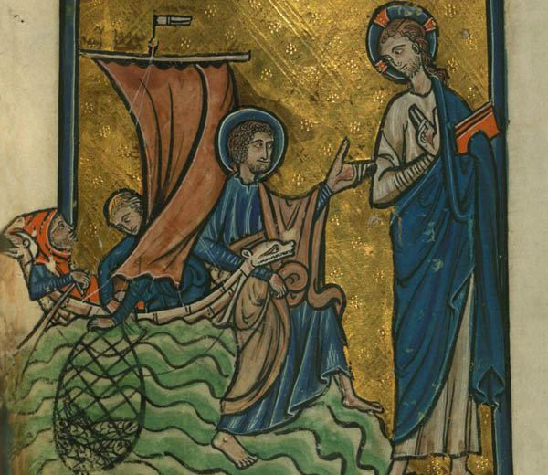 Miután Jézus jóllakatott ötezer embert, nyomban felszólította tanítványait, hogy szálljanak a bárkába, és keljenek át a túlsó partra, Betszaidába, amíg ő hazaküldi a tömeget. Miután elbúcsúzott tőlük, fölment egy hegyre, hogy imádkozzék. Közben beesteledett. A bárka mélyen benn járt a tavon, ő pedig egyedül maradt a parton. Amikor látta, mennyire küszködnek az evezéssel – ellenszelük volt ugyanis –, az éjszaka negyedik őrváltása idején, a vízen járva feléjük indult. El akarta kerülni őket. Amikor meglátták, hogy a vízen jár, azt hitték, hogy kísértet; elkezdtek kiabálni, mert mindnyájan látták őt, és megrémültek. Ő azonban mindjárt odafordult hozzájuk, és így szólt: „Bátorság! Én vagyok, ne féljetek.” Aztán beszállt hozzájuk a bárkába, mire a szél elállt. Azok egészen magukon kívül voltak a csodálkozástól, mert nem okultak a kenyérszaporításból, és szívük még érzéketlen volt.