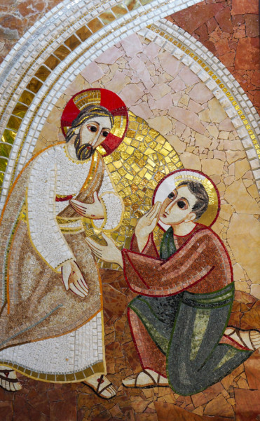 (Húsvétvasárnap este) a tizenkettő közül az egyik, Tamás, vagy melléknevén Iker, nem volt velük, amikor Jézus megjelent nekik. Később a tanítványok elmondták neki: „Láttuk az Urat.” De ő így szólt: „Hacsak nem látom kezén a szegek nyomát, ha nem érintem ujjaimat a szegek helyéhez, és nem tapintom meg kezemmel oldalát, én nem hiszem!”
