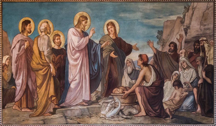Abban az időben amikor a nép nem találta Jézust, sem a tanítványait, bárkába szálltak, és elmentek Kafarnaumba, hogy megkeressék Jézust. Amikor a tó túlsó partján megtalálták, megkérdezték tőle: „Mester, mikor jöttél ide?”