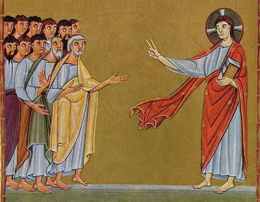 Abban az időben Jézus magához hívta a tizenkettőt, és kettesével elküldte őket, hatalmat adva nekik a tisztátalan lelkek felett. Megparancsolta nekik, hogy az útra ne vigyenek semmit, csak vándorbotot: sem kenyeret, sem tarisznyát, sem pénzt az övükben. Sarut kössenek, de két ruhadarabot ne vegyenek magukra. Azután így folytatta: „Ha valahol betértek egy házba, maradjatok ott addig, amíg utatokat nem folytatjátok. Ha valamely helységben nem fogadnak be és nem hallgatnak meg titeket, menjetek el onnét, s még a port is rázzátok le lábatokról, tanúbizonyságul ellenük.”