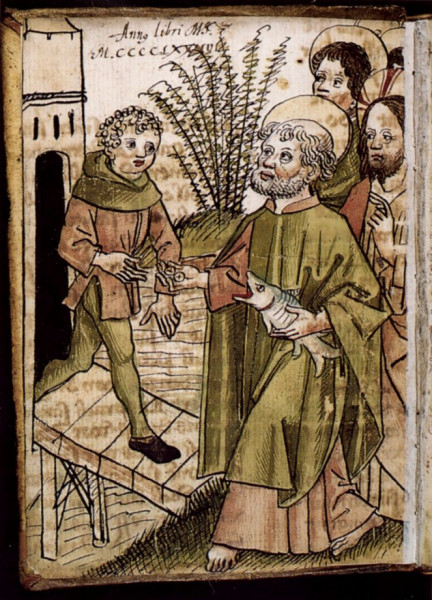 Amikor Kafarnaumba érkeztek, az adószedők Péterhez fordultak, és megkérdezték: „A ti Mesteretek nem fizet templomadót?” – „De igen” – felelte. Amikor belépett a házba, Jézus megelőzte őt kérdésével: „Mit gondolsz, Simon, a földi királyok kitől szednek vámot vagy adót, fiaiktól vagy az idegenektől?” „Az idegenektől” – felelte Péter. Erre Jézus így szólt: „A fiak tehát mentesek. De hogy meg ne botránkoztassuk őket, menj ki a tóra, vess horgot, és az első halat, amelyik ráakad, húzd ki! Nyisd ki a száját: találsz benne egy pénzdarabot. Vedd ki és add oda nekik értem és érted!”