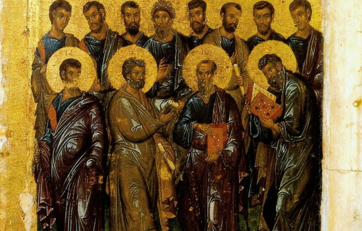 A következő tizenkettőt választotta ki: Simont, akinek a Péter nevet adta; Jakabot, Zebedeus fiát és Jánost, Jakab testvérét – akiket Boanergesznek, vagyis „mennydörgés fiainak” hívott. Továbbá kiválasztotta Andrást, Fülöpöt, Bertalant, Mátét, Tamást, Jakabot Alfeus fiát, Tádét, a kánaáni Simont és a karióti Júdást, aki később elárulta őt.