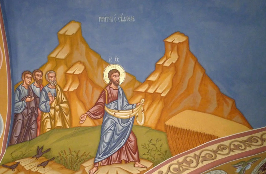 Abban az időben Jézus elment hazulról és leült a Genezáreti-tó partján. Hatalmas tömeg gyűlt össze, ezért beült egy csónakba, a tömeg pedig ott állt a parton. Ekkor példabeszédekben sok mindenre oktatta őket:
