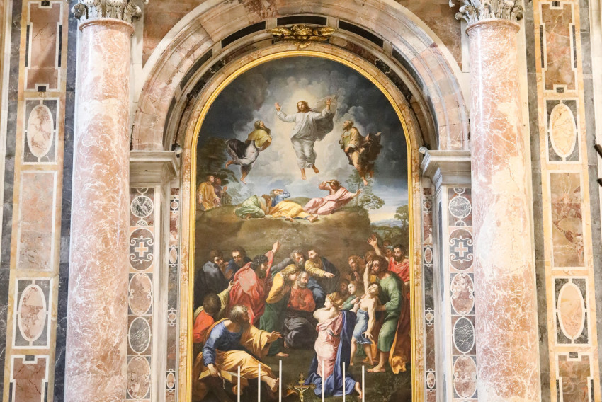 Abban az időben Jézus kiválasztotta Pétert, Jánost és Jakabot, és fölment velük a hegyre imádkozni. Míg imádkozott, arca teljesen átváltozott, ruhája pedig hófehéren ragyogott. S íme, két férfi beszélgetett vele: Mózes és Illés. Megdicsőülten jelentek meg, és haláláról beszélgettek, amelyet Jeruzsálemben kell majd elszenvednie. Pétert és társait elnyomta az álom. Amikor fölébredtek, látták dicsőségét és a mellette álló két férfit. Azok már épp menni készültek. Péter akkor így szólt Jézushoz: