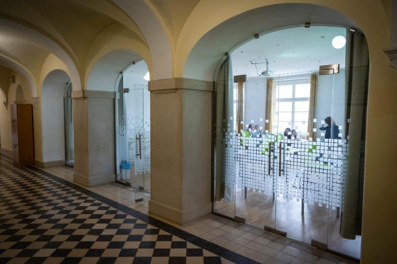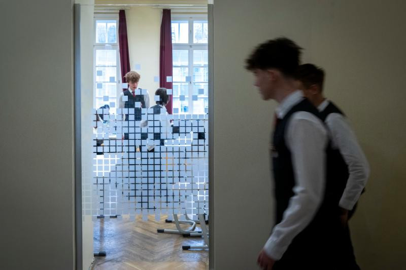 Üvegfalakra cserélték a vakajtókat a Szent Margit Gimnáziumban – hogy több fény jusson az épületbe; hogy átlátható működés legyen az oktatómunka.