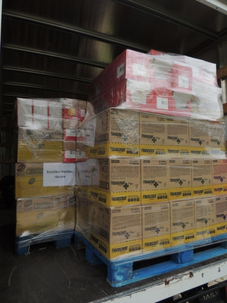 A teherautónyi rakományban több száz lapát, ezer pár gumikesztyű, valamint nagy mennyiségű antibakteriális kézfertőtlenítő folyadék és fertőtlenítő szer található 1,5 millió forint értékben. Ezekre napokon belül óriási szükség lesz, mert a víz visszahúzódásával komoly fertőzésveszély fenyegeti majd az érintett településeket.