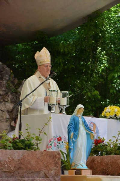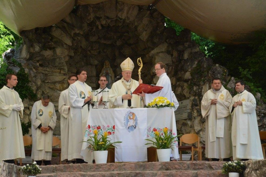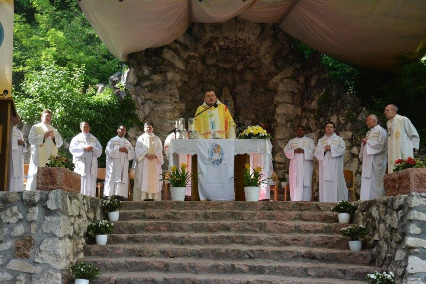 A búcsú vigíliáján a szentmisét Ábrahám Béla szalézi tartományfőnök mutatta be rendtársaival együtt Szűz Mária tiszteletére a lourdes-i barlang előtti tisztáson. A szaléziak Máriát tekintik közösségük édesanyjának, és különös szeretettel és bizalommal fordulnak hozzá, ahogy a rend alapítója, Bosco Szent János is tette.