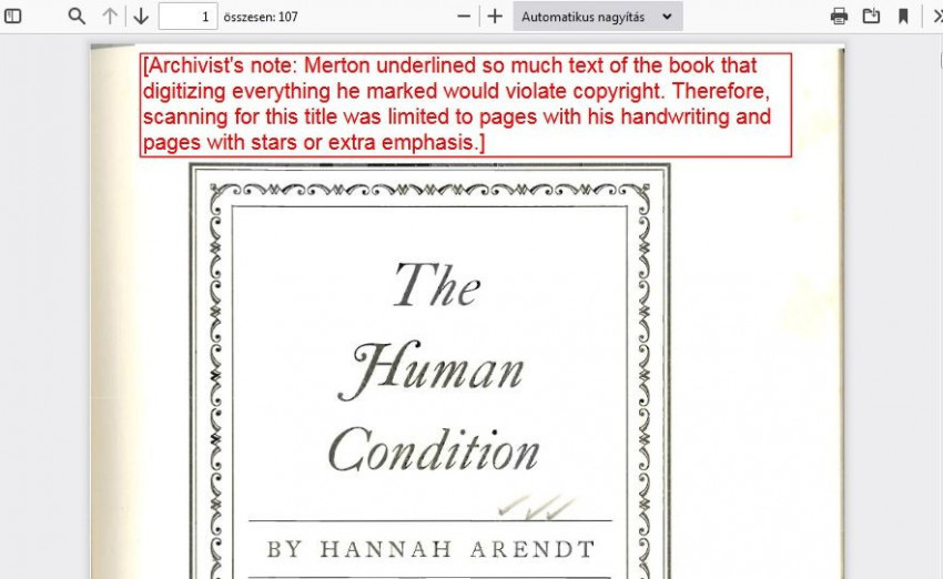 Feltárul, mely szövegrészletek bírtak Merton számára különös jelentőséggel: így például megfigyelhetjük számos bejegyzését Hannah Arendt The Human Condition (Az emberi állapot, 1958) című munkájában – ez a kötet olyannyira tele van Merton széljegyzeteivel, hogy a szerzői jogokra való tekintettel nem is digitalizálták minden egyes jelölését.