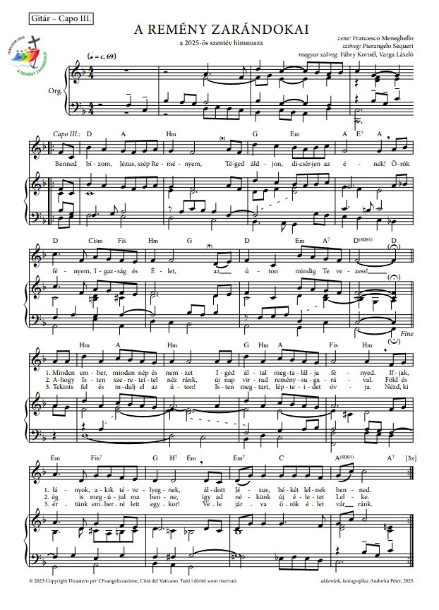 „A remény zarándokai” mottóval meghirdetett 2025-ös szentévhez kapcsolódó vatikáni kezdeményezések koordinálásáért felelős Evangelizációs Dikasztérium még 2022-ben írt ki mindenki számára nyitott pályázatot a jubileumi himnusz megalkotására. Feltételként határozták meg, hogy a pályaműnek alkalmasnak kell lennie arra, hogy az egyházi gyülekezet és a schola cantorum énekelje.