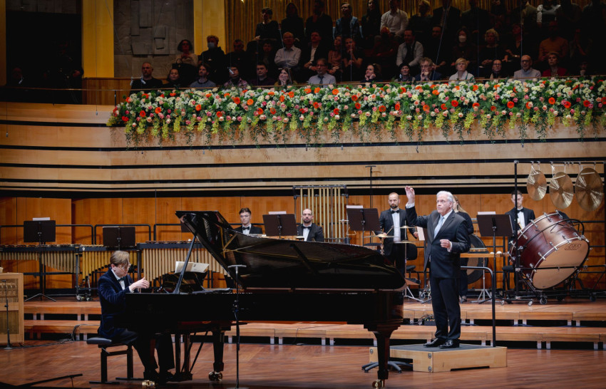 A kedves, szívélyes gesztusok sora már azzal elkezdődik, hogy a körúti és a Müpa felé tartó villamosokon, buszokon hangosbemondón emlékeztetik az utasokat a centenáriumra: szeretettel köszöntik a százéves komponistát, Budapest díszpolgárát.