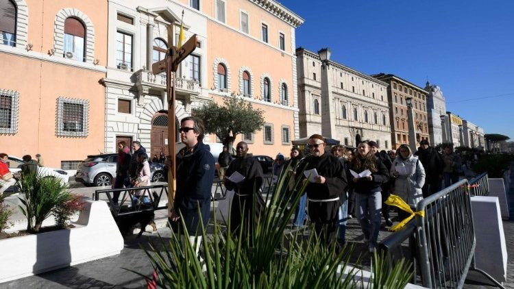 Több száz csoport már megtette a zarándoklatot: a megújult Piazza Piáról indulva, a menet élén a jubileumi kereszttel, imádkozva ment végig a Via della Conciliazionén, egészen a bazilikáig.