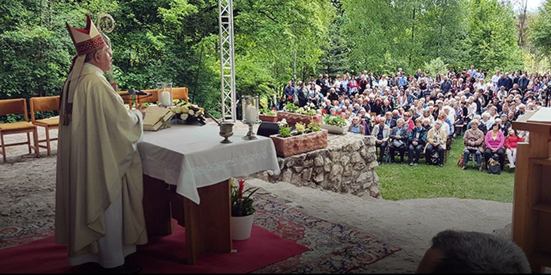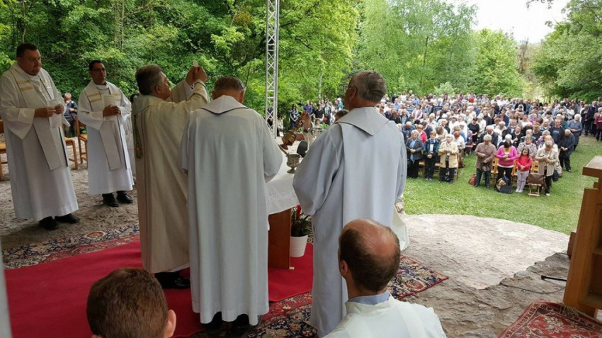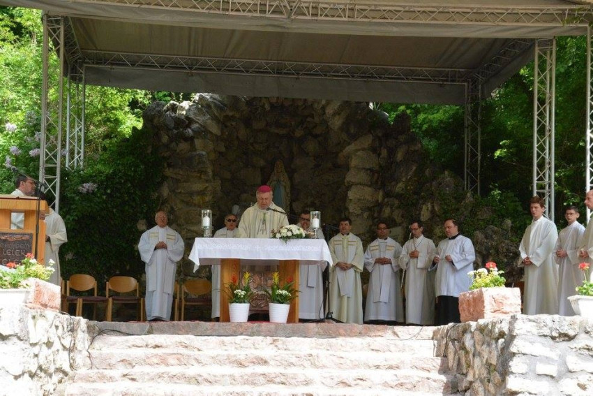Május 7-én, vasárnap Ábrahám Béla tartományfőnök köszöntötte a búcsúi szentmisére érkező híveket és zarándokokat, akik megtöltötték a lourdes-i barlang előtti teret.