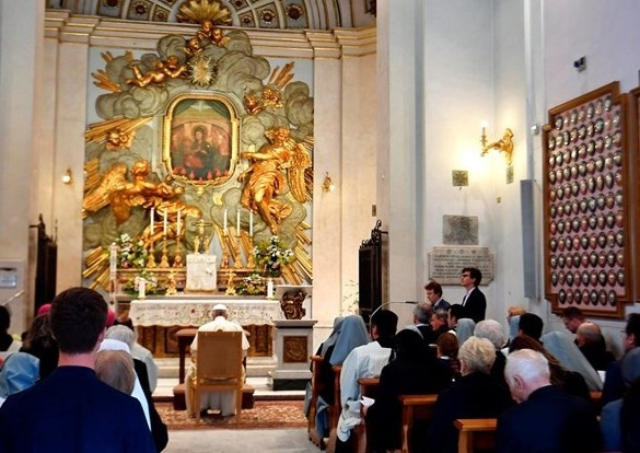 Az imádságot Szíria és a világ békéjéért ajánlotta fel a pápa. A kegyhely kápolnájában a Mária-kép előtt imádságba mélyedt, majd felolvasták a húsvétvasárnap a Szent Péter-bazilika loggiájáról elhangzott Urbi et Orbi üzenet azon részét, mely felhívás Szíria békéjéért: