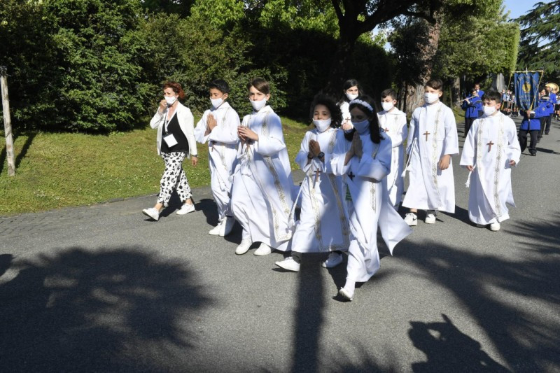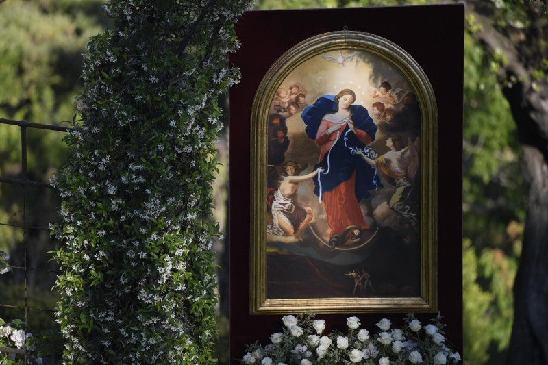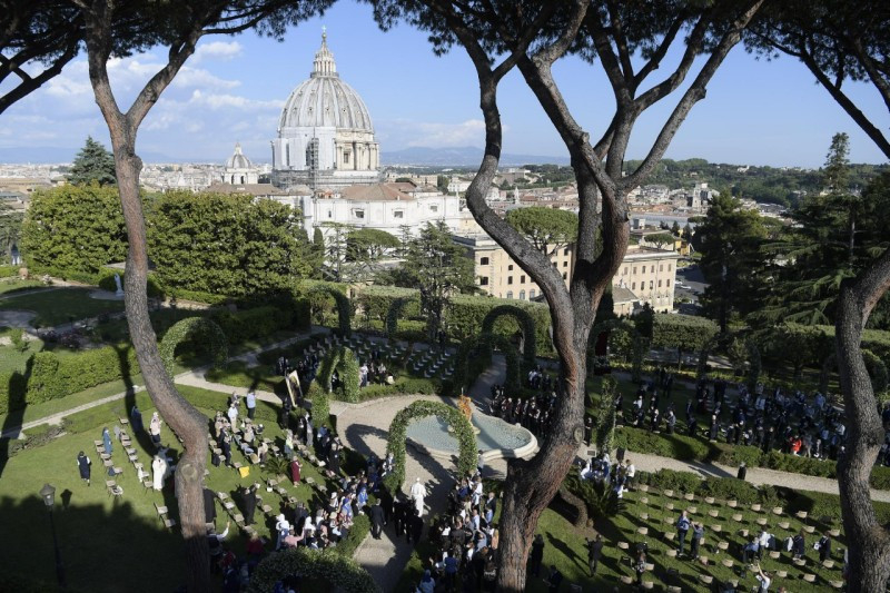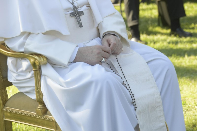A vatikáni záró eseményen papok, szerzetesek, cserkészek vettek részt, hogy Ferenc pápa vezetésével imádkozzák a Vatikáni Kertek lourdes-i barlangjánál a rózsafüzért.