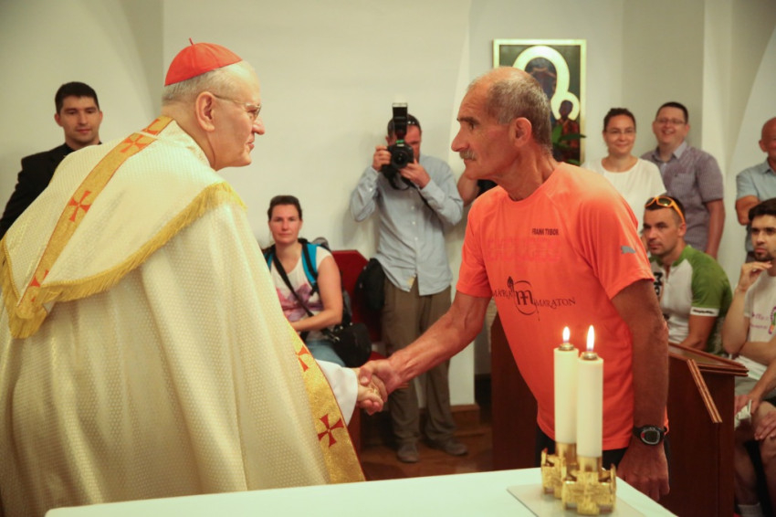 A zarándokok csaknem az út felénél járnak. Mögöttük tíz nap kánikula. Napi tizenkét liter víz, ötezer elégetett kalória, három pár cipő. Boldog órák, amelyeket a közösség, a befogadás, a feltöltődés, a baráti figyelmesség jelent számukra, és kritikus pillanatok, amikor az embert csak a szíve viszi előre. A Mária Maraton futóival és kerékpárosaival június 27-én találkoztunk a budapesti megállójukon. Csíksomlyó felé Erdő Péter bíboros áldásával indultak tovább.