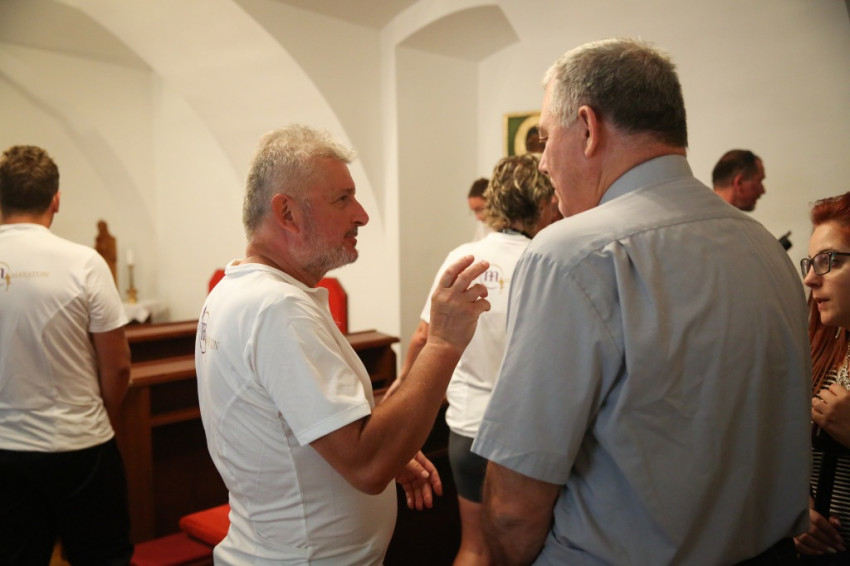 Megtudjuk, hogy futás közben egymást váltják a csendes, elmélkedéssel töltött szakaszok és a beszélgetések egy-egy baráttal, Veress Bélával vagy a hosszabb-rövidebb szakaszokra becsatlakozókkal. Tibor hozzáteszi: fontosak a magunkba zárkózások is, ilyenkor rendezi az ember a gondolatait. Amikor arra kell koncentrálni, hogy haladjunk, olyankor le kell tenni minden fizikai és lelki terhet, különben nem tudunk teljesíteni. Kell a meditáció, a számvetés is, annak tisztázása, hogy mit csináltunk jól, és mit kellett volna másképp. Aztán mindez letisztul, és megerősödik bennünk, hogyan tovább. A szellemnek, a léleknek és a fizikumnak egységben kell lennie, mert ha valamelyik gyenge, akkor elakadunk. Sokat jelentenek az esti beszélgetések is, amelyeket a csapat lelkipásztora vezet. Ilyenkor átbeszéljük, hogyan éltük meg a napot, és megosztjuk egymással az élményeinket. Ez erősíti a közösséget, és erőt ad a folytatáshoz. Akárcsak az, hogy a kritikus napokon, amikor fáradtan megérkezünk, vannak, akik örömmel várnak, tapsolnak, átölelnek. Olyan ez, mint amikor az autó tankját teletöltik a benzinkúton. Ez történt velünk most Budapesten is.