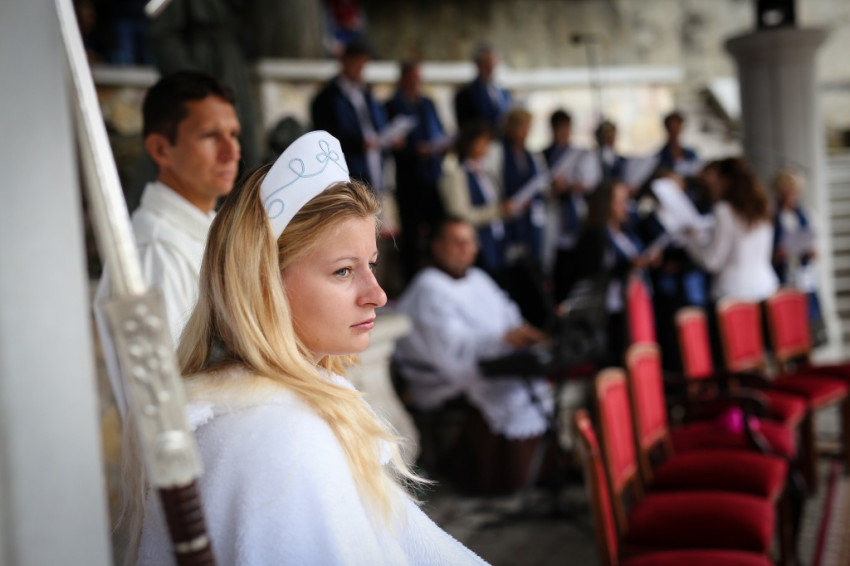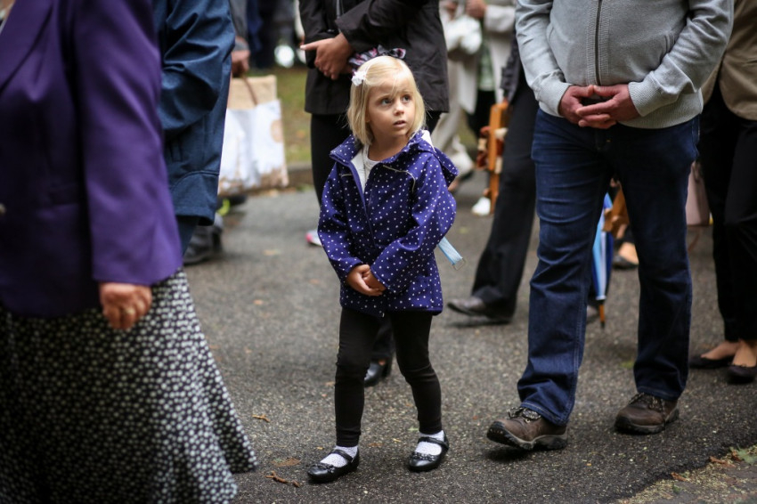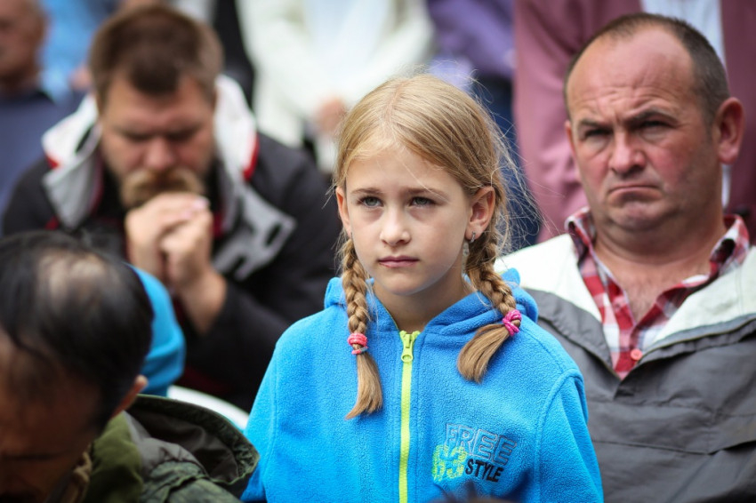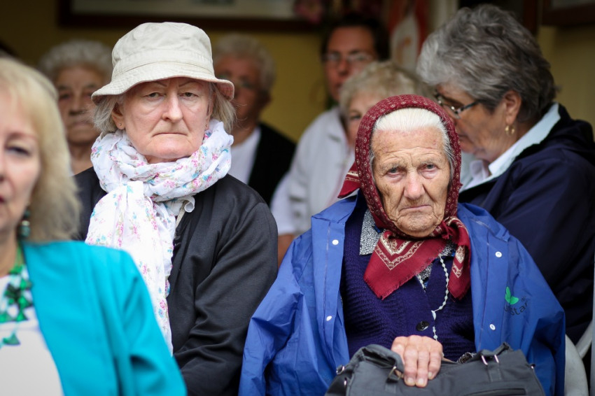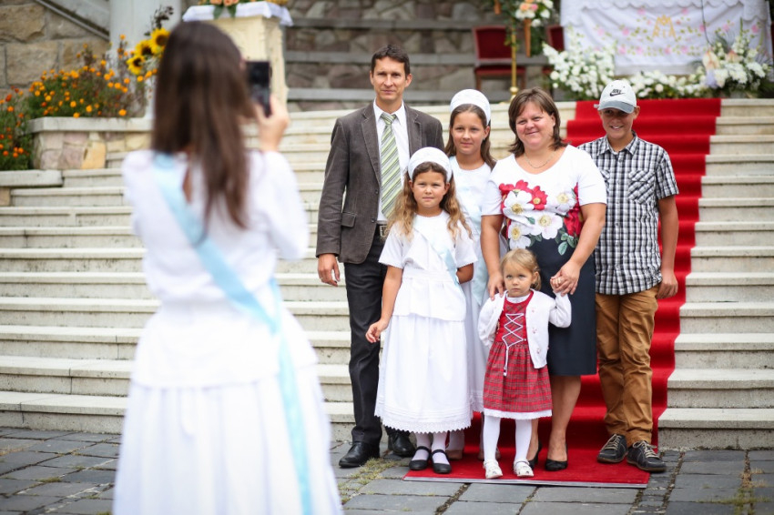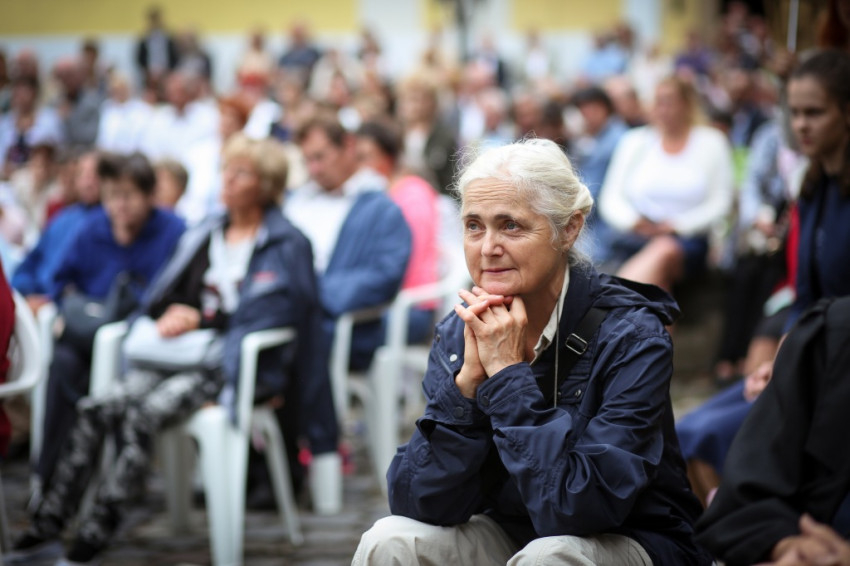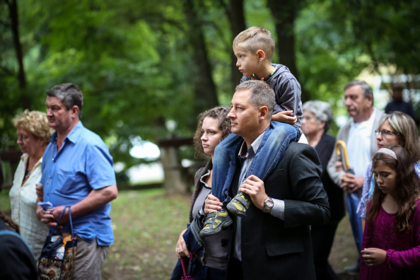 Miután a templomból a szabadtéri oltárhoz vonult az asszisztencia, legelöl a templom keresztjével, mögöttük a máriás lányok Szűz Mária szobrával és a koncelebráló papság, Stella Leontin, a bazilika plébánosa köszöntötte a megjelenteket.