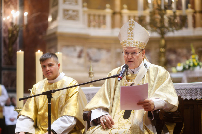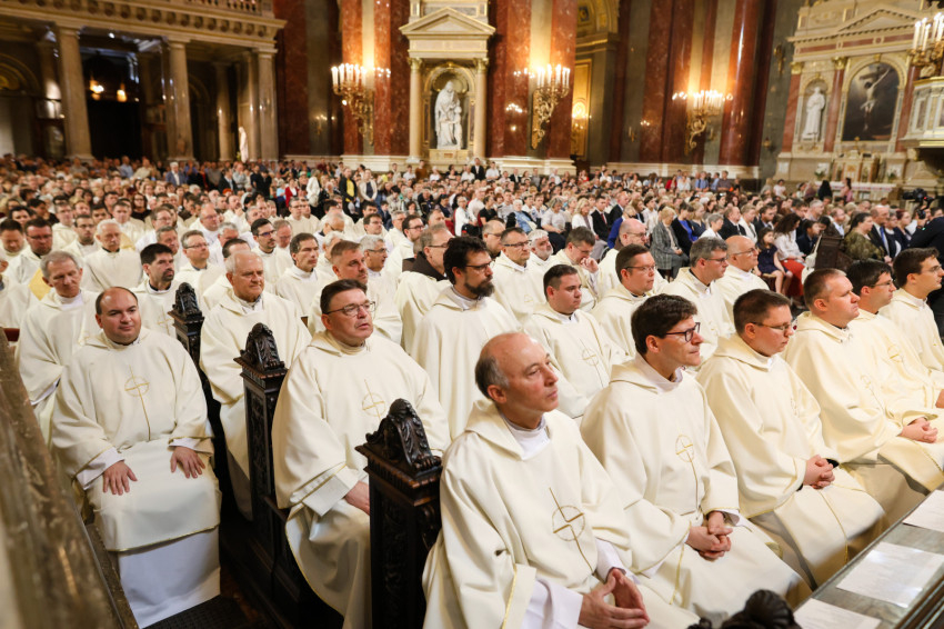 Az esztergomi bazilika felújítási munkálatai miatt a Szent István-bazilikában megtartott szertartáson Mohos Gábor és Martos Levente Balázs esztergom-budapesti segédpüspök mellett a főegyházmegye papságának jelentős része koncelebrált.
