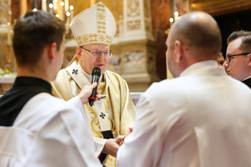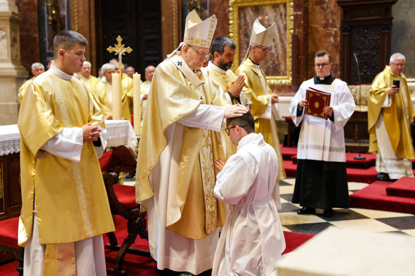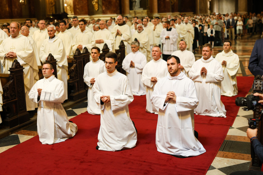 A szentmise keretében megtartott pap- és diakónusszentelés alkalmával Erdő Péter bíboros, prímás, esztergom-budapesti érsek Faragó András diakónust pappá, Alpek Gergely, Piukovics Dániel, Riesz Benedek, Schmotzer Kristóf akolitust diakónussá, valamint Bertalan Árpád, Győző Tamás, Kocsis Vilmos Zoltán, Kuti Imre és Lazányi Ferenc akolitust állandó diakónussá szentelte.