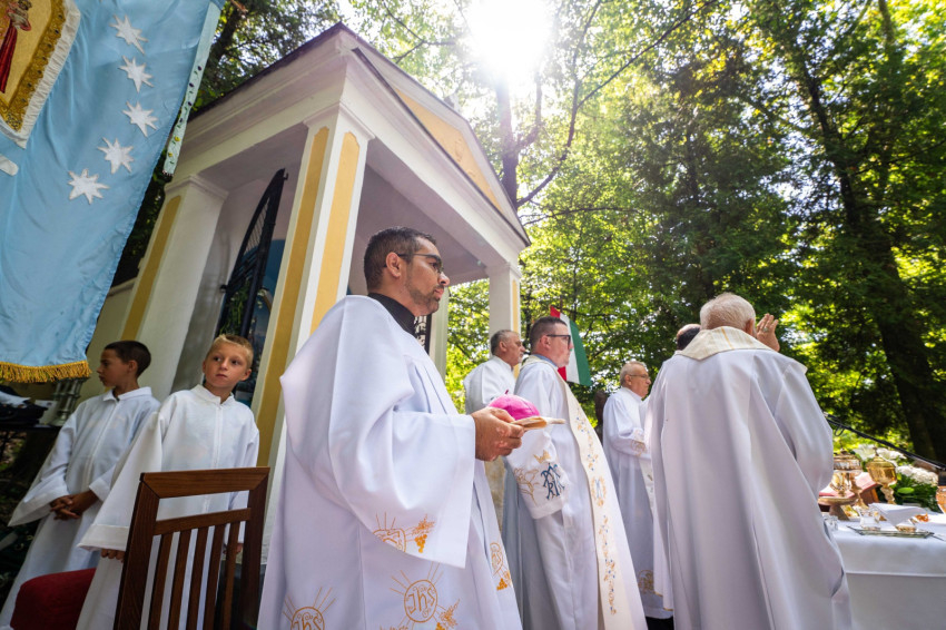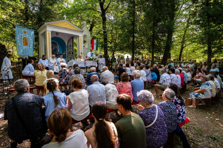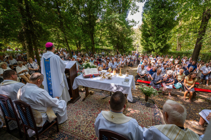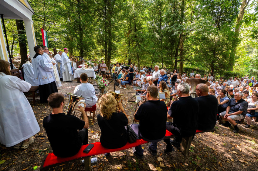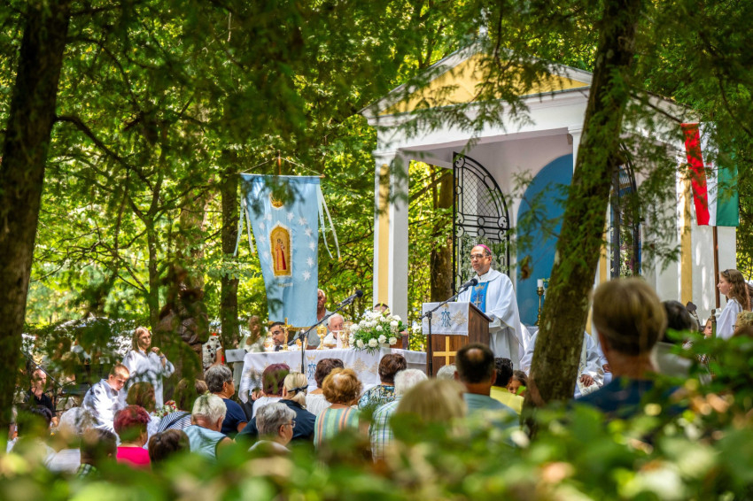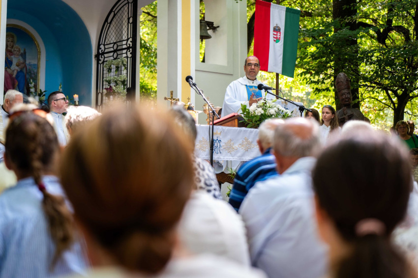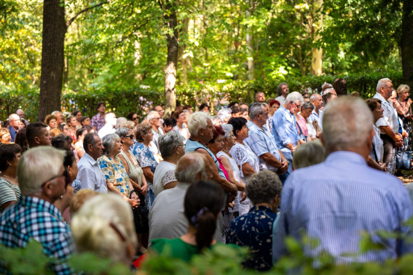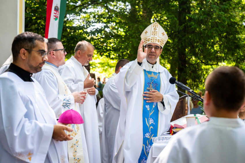 Székely János püspök így üdvözölte a híveket: „Nagy szeretettel köszöntök minden kedves zarándokot. Itt állunk a leggyönyörűbb templomban, ami csak létezik, a teremtés, a természet templomában. Ezt a templomot Isten építette. Oszlopai a fák, boltozata az égbolt, mennyezetfreskói a felhők, padlózata a fűszálak, a virágok.