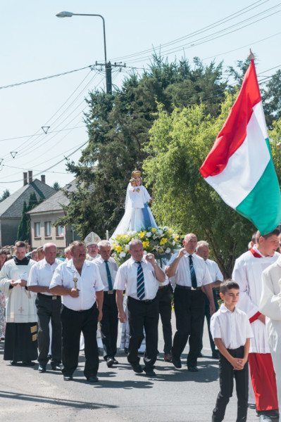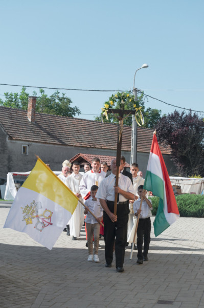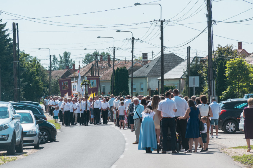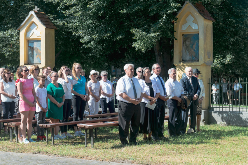 Az ünnepi szentmisét a hagyományoknak megfelelően szabadtéren, a templom melletti kálvárián tartották. A körülkerített tér és környéke idén is megtelt ünneplőkkel.