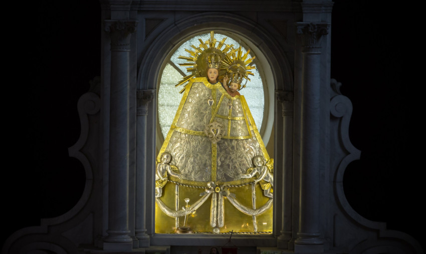 A fehér márvány oltárépítmény neobarokk stílusban készült a 19. század közepén. A szentségház 1936-ban készített ajtaját Szűz Mária életéből vett jelenetek díszítik. Az oltár körbejárható: a zarándokok megkerülik, de egyesek fogadalomból térden csúszva járják körbe.