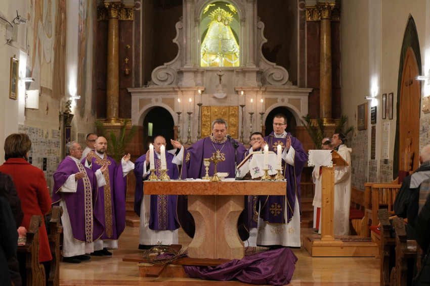 Felföldi László pécsi megyéspüspök szentbeszédében a nagyböjt kettősségére hívta fel a figyelmet: a jézusi győzelemre és az emberi bukásra, ami miatt nem sikerült megőriznie a paradicsomi állapotot. Ez a mi életünk, közösségeink mai története is egyben, melyek ha elveszítik az Istennel való kapcsolatot, kikerülnek a paradicsomi állapotból.