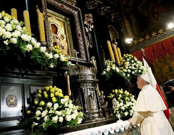 Ferenc pápa május 17-én, az általános kihallgatás végén megáldotta a Jasna Góra-i Mária-kegykép új koronáit. A diadémok annak a koronának a másolatai, amelyet XI. Kelemen pápa adományozott a częstochowai Szűzanya ikonjának első megkoronázása alkalmával. Az általános kihallgatáson részt vettek a pálos szerzetesek, élükön Marian Waligóra atyával, a kegyhely perjelével.