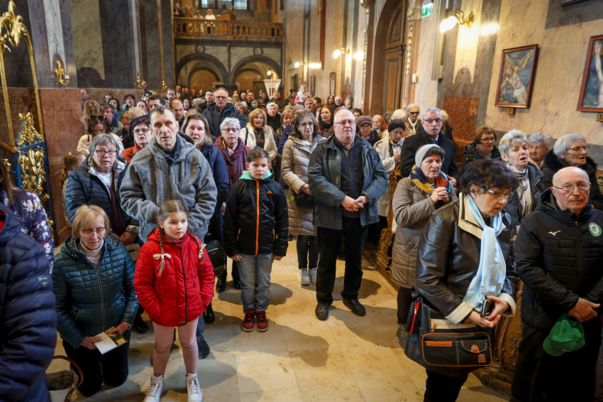 Vasárnap délelőtt már jóval 10 óra előtt megtelt a Nagyboldogasszony-székesegyház, és a gyóntatószékek előtt is hosszú sorokban várták a zarándokok a bűnbocsánat szentségének kiszolgáltatását.