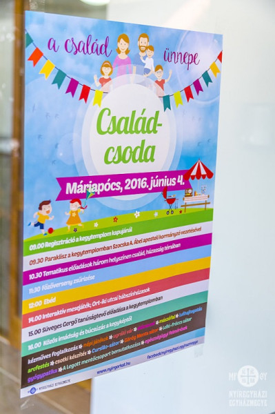 A program reggel a Szocska Ábel apostoli kormányzó által vezetett paraklisszal (az Istenszülőhöz szóló imádság) kezdődött a kegytemplomban, majd a délelőtt során tematikus előadásokkal folytatódott, amelyeket három helyszínen tartottak egy időben: Papp Tibor, a Szent Atanáz Görögkatolikus Hittudományi Főiskola tanára Az irgalmasság iskolája a család, Trescsula László filkeházi parókus „Több kettőnél” – Megnövekedett terhek a családban címmel tartott előadást, Tóth András, a Nyíregyházi Egyházmegye családreferense pedig házaspárokkal végzett konfliktuskezelő csoportmunkát.