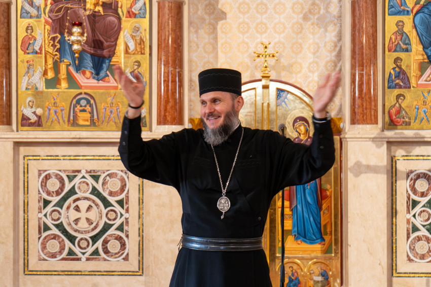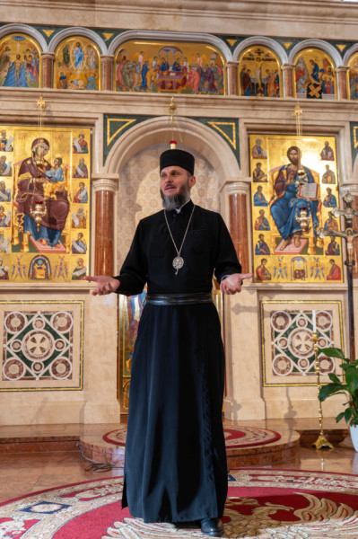 Ezután átvonultak a közeli Szent Miklós-székesegyházba, hazánk talán legszebben kifestett görögkatolikus templomába, melyet Szocska Ábel nyíregyházi megyéspüspök mutatott be nekik.