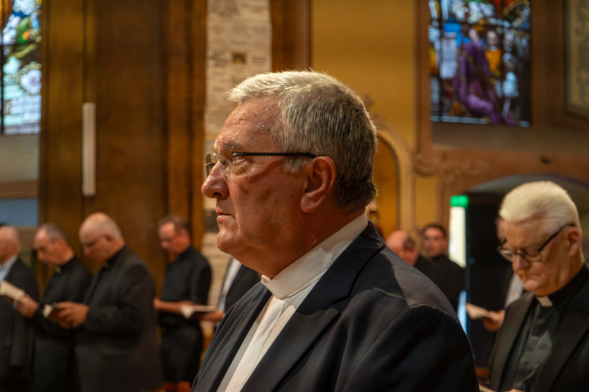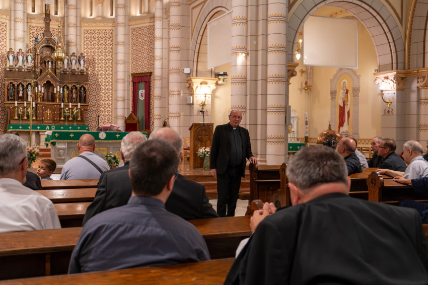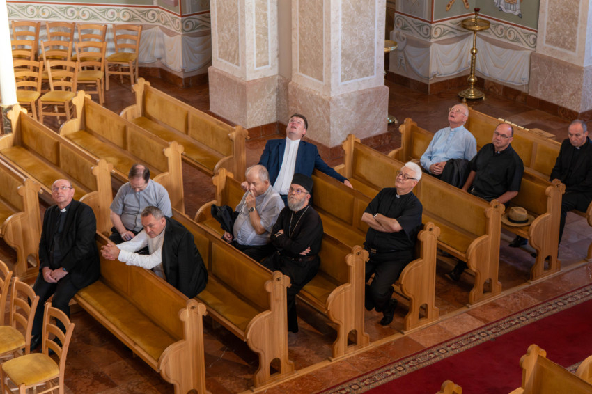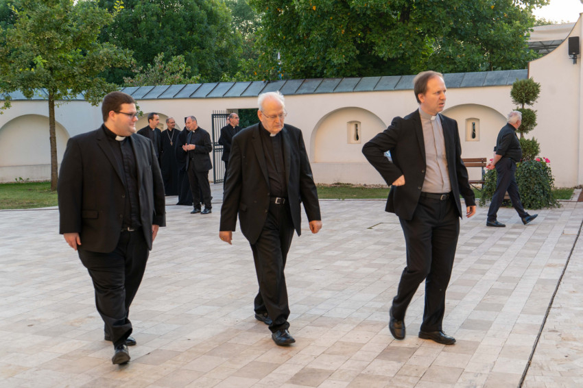 Végül megtekintették a római katolikus székesegyházat, amelyet Palánki Ferenc debrecen-nyíregyházi megyéspüspök kérésére Felföldi László pécsi megyéspüspök mutatott be püspöktársainak, aki három évig plébánosa, hat évig pedig káplánja volt a Magyarok Nagyasszonya-társszékesegyháznak. A templomban az esti szentmisére betérő hívek meglepődve és kitörő örömmel köszöntötték szeretett „Laci atyájukat”.