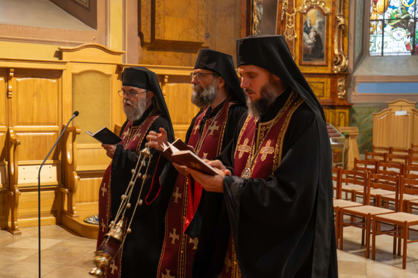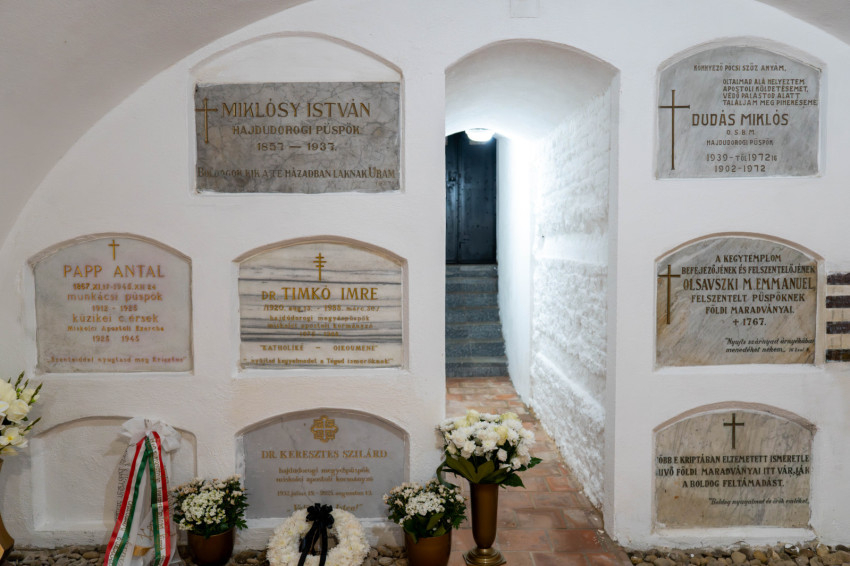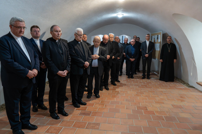 Máriapócsra visszatérve a püspökök megemlékező szertartást, úgynevezett pannichidát végeztek az augusztus 13-án elhunyt Keresztes Szilárd nyugalmazott hajdúdorogi megyéspüspök lelki üdvéért, majd az altemplom kriptájában imádkoztak a sírjánál.