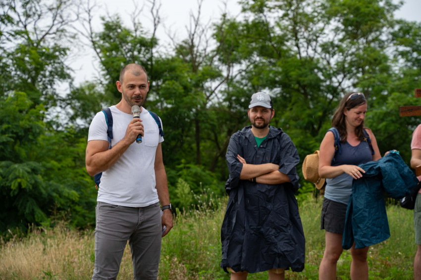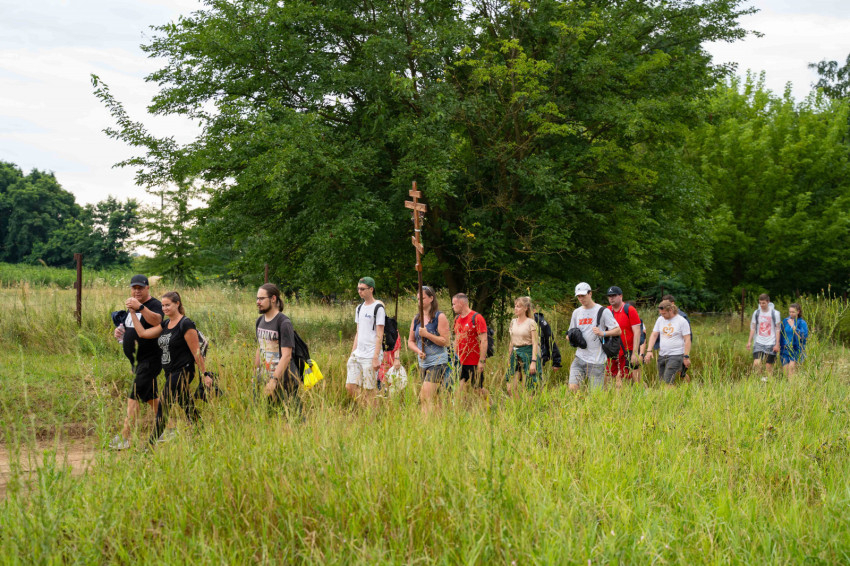 A kitérő nem csak a megtett kilométereket szaporította. A domb tetején húszperces megállót tartottak a fiatalok, hogy meghallgassák Kovács Csaba nyíregyháza-rozsrétszőlői parókus elmélkedését.