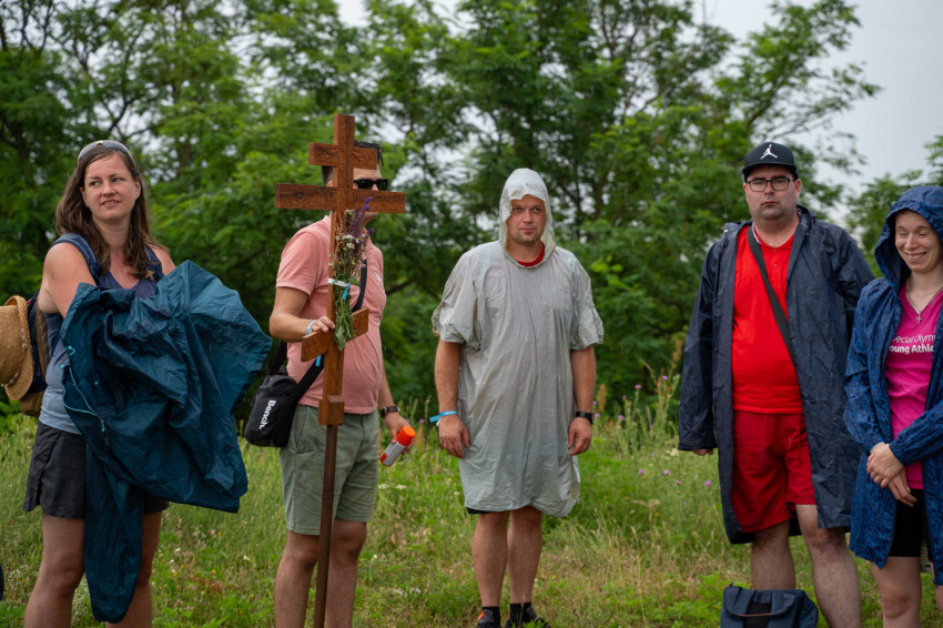 Esőben érkeztek Nyíregyháza határába a 22+ zarándoklat résztvevői július 21-én. Ennek ellenére a tervek szerint felkapaszkodtak a szántó- és legelőföldek ölelésében található Geri dombra, a település legmagasabb pontjára, egy kunhalomra.