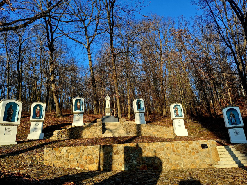 – Igen. Ugyancsak a kegytemplom mögötti dombon, a keresztút végén lévő Szent Kereszt-kápolnától indulva bal oldalon találhatók a dicsőséges út stációi, amelyek Jézus feltámadása utáni dicsőséges megjelenéseit követik végig egészen pünkösdig. Sajnos a második világháború után az itt állomásozó orosz katonák, mielőtt 1952-ben hazamentek volna, a tizennégy stációból hetet ledöntöttek. Ezeket azóta sem állított helyre senki. Igaz, hogy a kommunista diktatúra éveiben nehéz lett volna a rongálást helyrehozni, az itt lakó ferencesek pedig idősek, betegek voltak, nem vállaltak egy ilyen nehéz munkát. Remélem, hogy a Jóisten ad annyi egészséget, hogy ezt a felújítást még befejezzem. Ha összegyűlik rá a szükséges pénzösszeg, egy év alatt végzünk a felújítással; cég, mérnök, munkás lenne hozzá. A felújítás körülbelül 200-250 ezer lejbe kerülne. (…) A stációkból elvileg hetet fel kell újítani, hetet pedig újonnan készíteni. De mivel a régieknek nincs megfelelő alapjuk, jobb volna a még álló hét stációt is lebontani, és szilárd alapra újra felépíteni. Akkor legalább 150–200 évig nem kellene javítani.