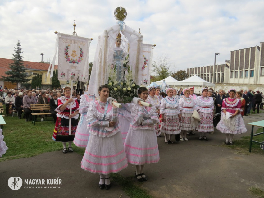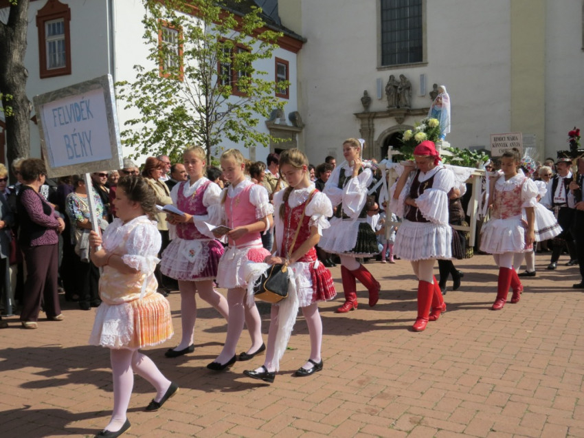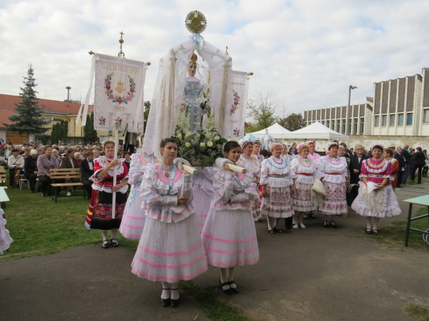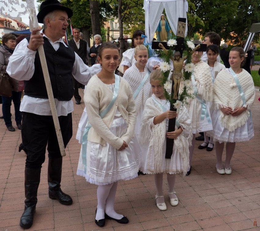 A búcsú sok ezer résztvevőjét, köztük a közel hatvan, népviseletbe öltözött, Mária-szobrot hozó egyházközségi csoportot a plébánia több, mint kétszáz rendezője fogadta és segítette.