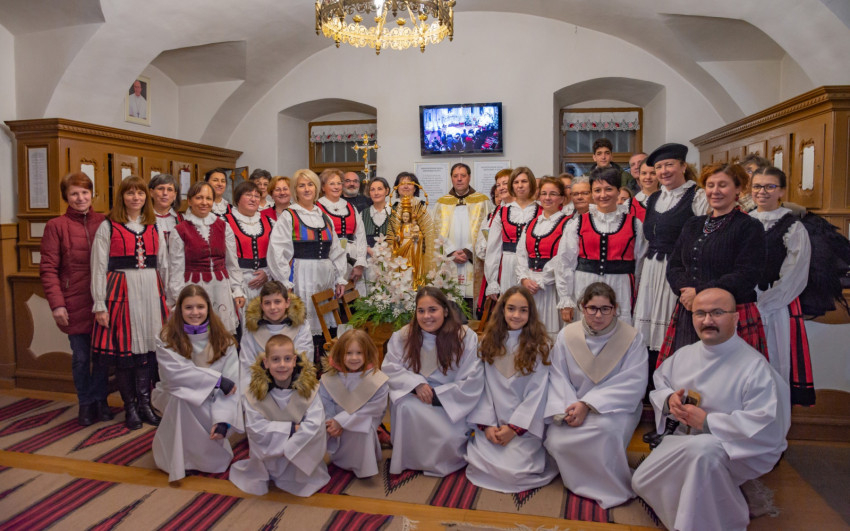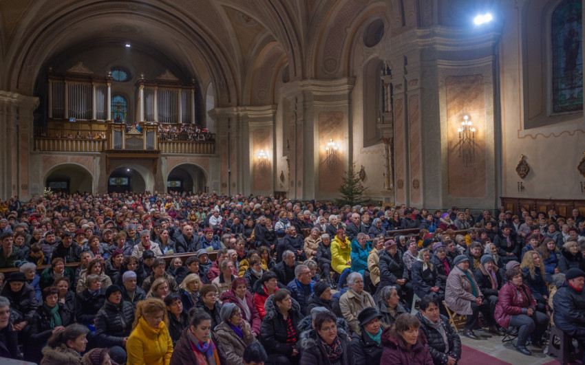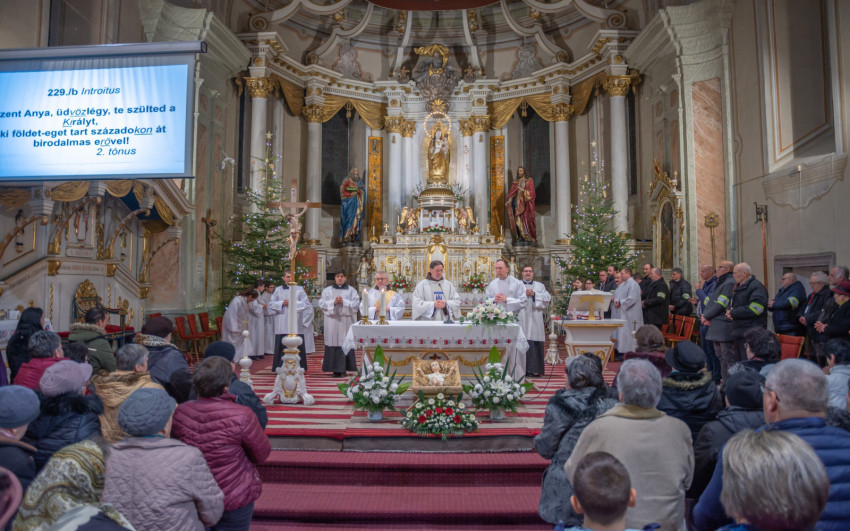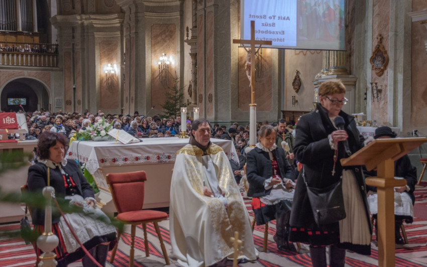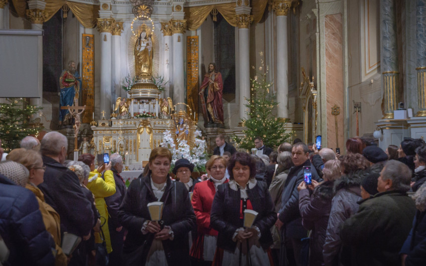A szentmise után a kegytemplom kórusának tagjai vezetésével az örvendetes rózsafüzért imádkozták a hívek.