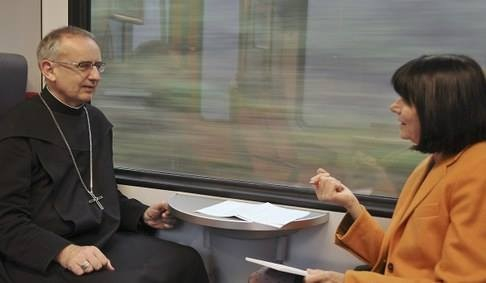 Tizenkét éve vonattal vagy autóstoppal közlekedem. A vonaton többet tanultam, mint a püspöki kar összes ülésén. Elkezdtem twitterezni, ami komolyabb intelligenciát kíván, mint a Facebook, mivel itt csak 140 karakterem van, hogy kifejezzem a gondolataimat. Kialakult az utazások közben a vasúti példázatok műfaja, amiből egy könyvet is írtam. Az egyik ilyen példázat: »Aki az autójában utazik, az a saját négy fala közé van bezárva. Aki pedig vonatra száll, az az egész világgal találkozik.« Többször próbáltam elhívni kollégáimat a püspöki karból, hogy jöjjenek velem stoppolni és vonatozni, de sose jártam sikerrel.