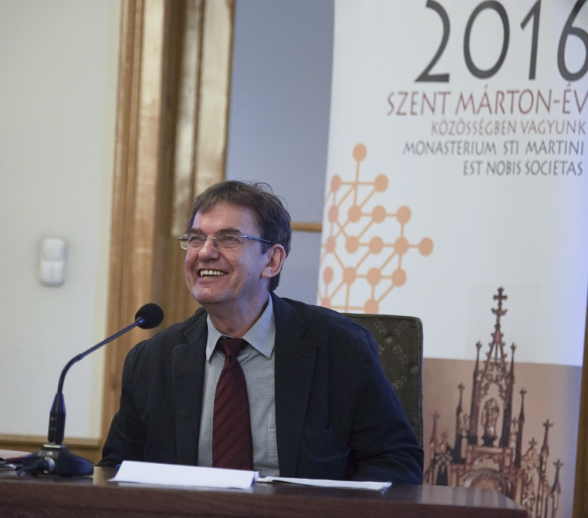 Szovák Kornél medievista, az MTA doktora, egyetemi docens (PPKE) A pannóniai Szent Márton-hagyomány és Pannonhalma című előadásában arra a kérdésre kereste a választ, hogy Szent Márton pannonhalmi születésének legendája honnan eredhet.