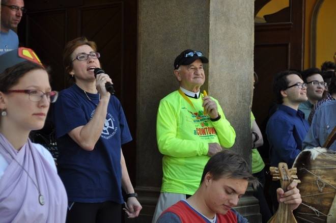 Április 22-én, szerdán különleges futóversenyt rendezett a gimnázium a dallasi szerzetes tiszteletére. A néptáncos bemelegítés után csaknem három kilométert futottak a gimnazisták és általános iskolások a belvárosban. Marton Bernát atya sérülése miatt nem futott, az indítást viszont vállalta. Harminckét maraton és hét ultramaraton után elmondta: szeretné, ha minél többen megtapasztalnák a futás örömét. Csak egy futócipő kell: bárki bármikor elkezdheti.