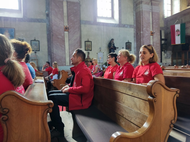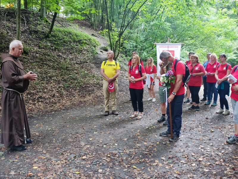 A karitászközösség zarándokénekeit a Rimóci Szent Erzsébet karitászcsoport tagja, Virágné Márta vezette – a közel tízórás vonulás énekes, imádságos zarándoklássá vált.