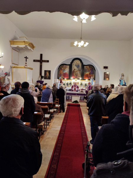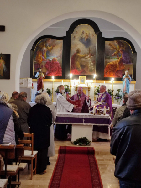 Az így megjelenített háromrészes pompás oltárkép az első magyar szent családot állítja a kisecseti hívek elé. Erre utalt Marton Zsolt püspök is a szentbeszédében.