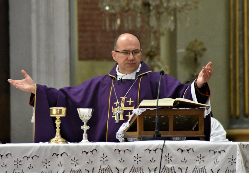 A püspök szentbeszédében – a napi evangélium kapcsán, amely Jézus és a szamáriai asszony találkozásáról szólt – Szamária és Izrael történelmi harcának körülményeit ismertette, majd a víz szimbolikus jelentéséről és a Szentháromságról elmélkedett. A víz életünk létfontosságú eleme, testi-lelki megtisztulásunkhoz is szorosan kapcsolódik, de magát az életet is szimbolizálja. Jézus példabeszédében az éltető forrást önmagára és a Szentlélekre vonatkoztatja. Isten akaratát teljesíti áldozatával, hogy odaadta magát érettünk. Úgy fogalmazható meg: a Szentlelket a Fiú által adja az Úr.