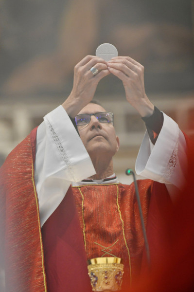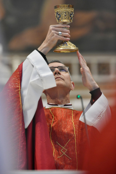 Szent Máté evangelista ennek a hitvallásnak egy további, személyes árnyalatot is ad. Ez pedig a felelősség kérdésével kapcsolatos – jelentette ki Martos Levente Balázs, és hozzátette: Csak Máté evangélista meséli el nekünk Pilátus kézmosását, Júdás vallomását, miszerint elárulta az ártatlan vért; továbbá, hogy a nép, amely hallja és látja Pilátus igyekezetét, hogy talán még fölmentse Jézust, azt mondja: vére rajtunk és utódainkon. Ez a vér a megszentelő áldozat vére, és ez nem csupán felelősséget ró azokra, akikre ráhullik, hanem megszenteli és tisztára mossa őket. Megtisztít a Bárány vére – fogalmazott a püspök. Kiemelte: Máté evangelista azt állítja, hogy Krisztus vére rajtunk és utódainkon: nemzedékről nemzedékre, az engesztelés vére, egy olyan szabadulásé, amely csak Istentől jöhet.