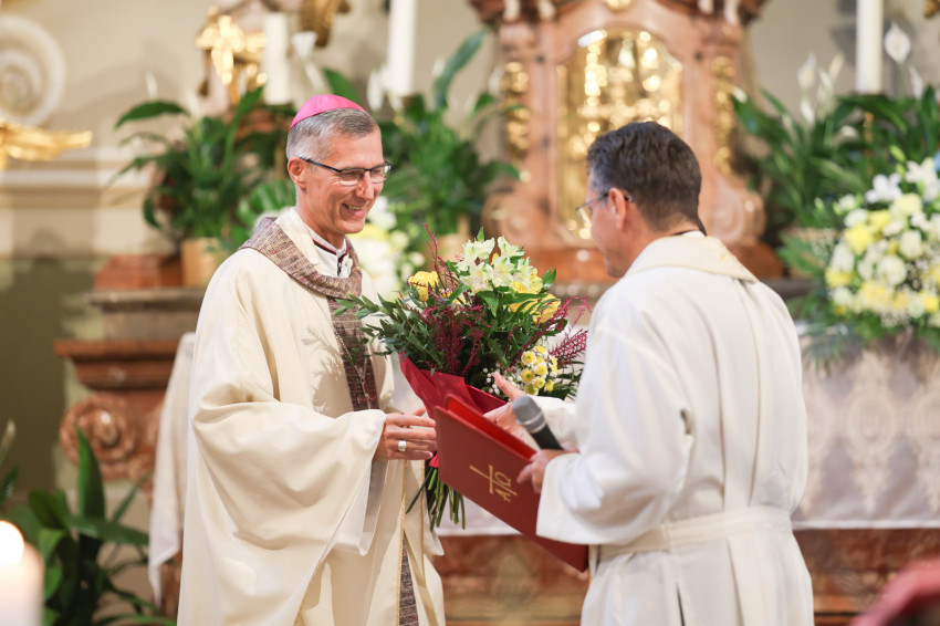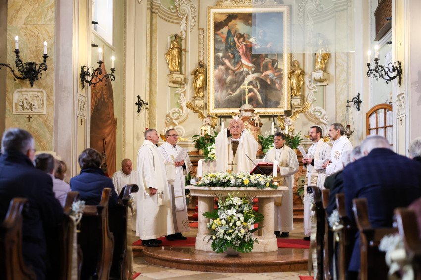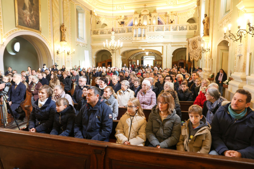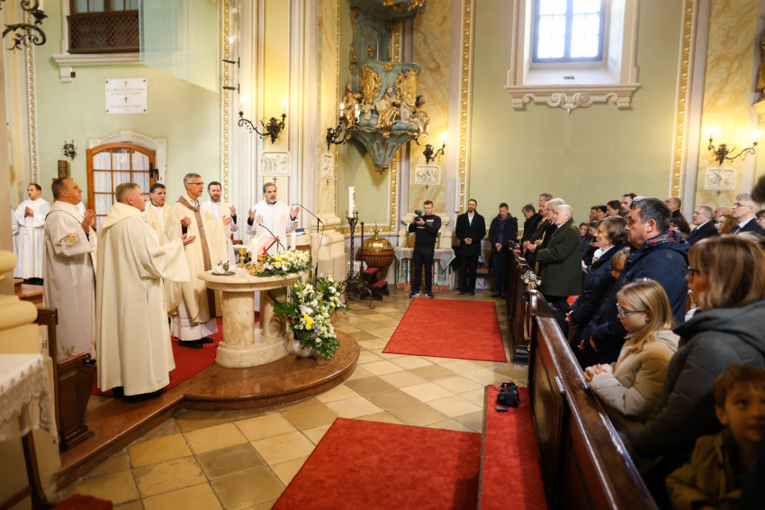 A szentmise elején Ailer Gáspár plébános köszöntötte az egybegyűlt híveket, majd röviden felidézte a Szent Lipót-templom több mint két és fél évszázados történetét – a gyökereket, amelyekből ez a közösség ma is táplálkozik.