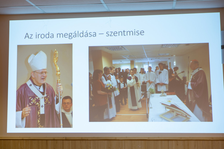 Az ünnepség a közösségek bemutatkozásával és hálaadásával folytatódott. Kollár Ágnes ismertette először a missziós központ létrejöttét és történetét. A diavetítés során láthattuk az adományozókat, és ahogyan 2006 nagyböjtjén Erdő Péter megáldotta a misszió termeit. Kunszabó Zoltán ekkor adta át az Új Jeruzsálem Közösség statútumát a bíborosnak.