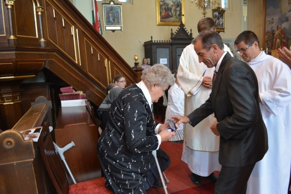 Fekete Györgyné 1939. szeptember 27-én született. Élete eddigi 79 éve alatt kilenc pap mellett segítette munkájával az egyházközösséget és a közösségi hitéletet: 16 éves kora óta rózsafüzér-társulati tag; 12 évig volt előimádkozó a templomban, és 51 évig sütötte a kántorostyát. Évekig takarította a temető egy rábízott részét. Rendszeresen vállalta a templomtakarítást, a nővérek házának nagytakarítását, és a plébánia szőlőjében is sokat dolgozott. Kapcsolata az Istennel és a Szűzanyával megingathatatlan. Amíg tehette, látogatta az egyházközség betegeit, és vállalta, hogy kitakarítsa otthonaikat. Önzetlensége soha nem ismer határokat.